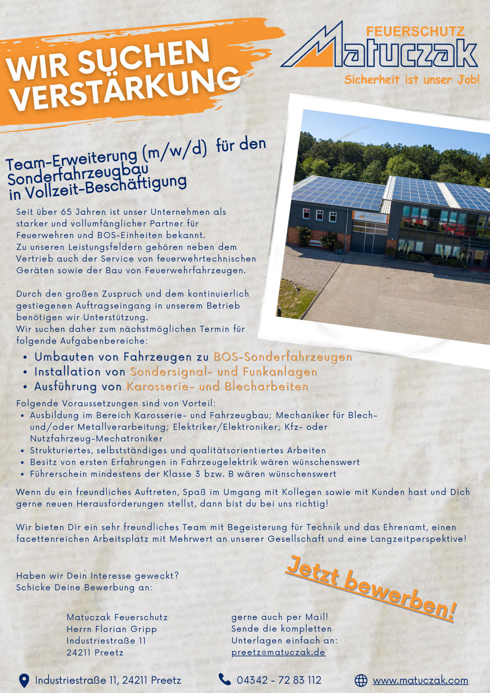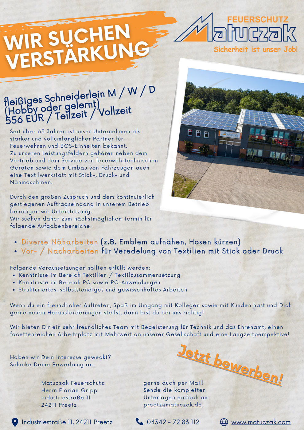 gerne auch per Mail an: preetz@matuczak.de oder nutze unsere Schnellbewerbung:
